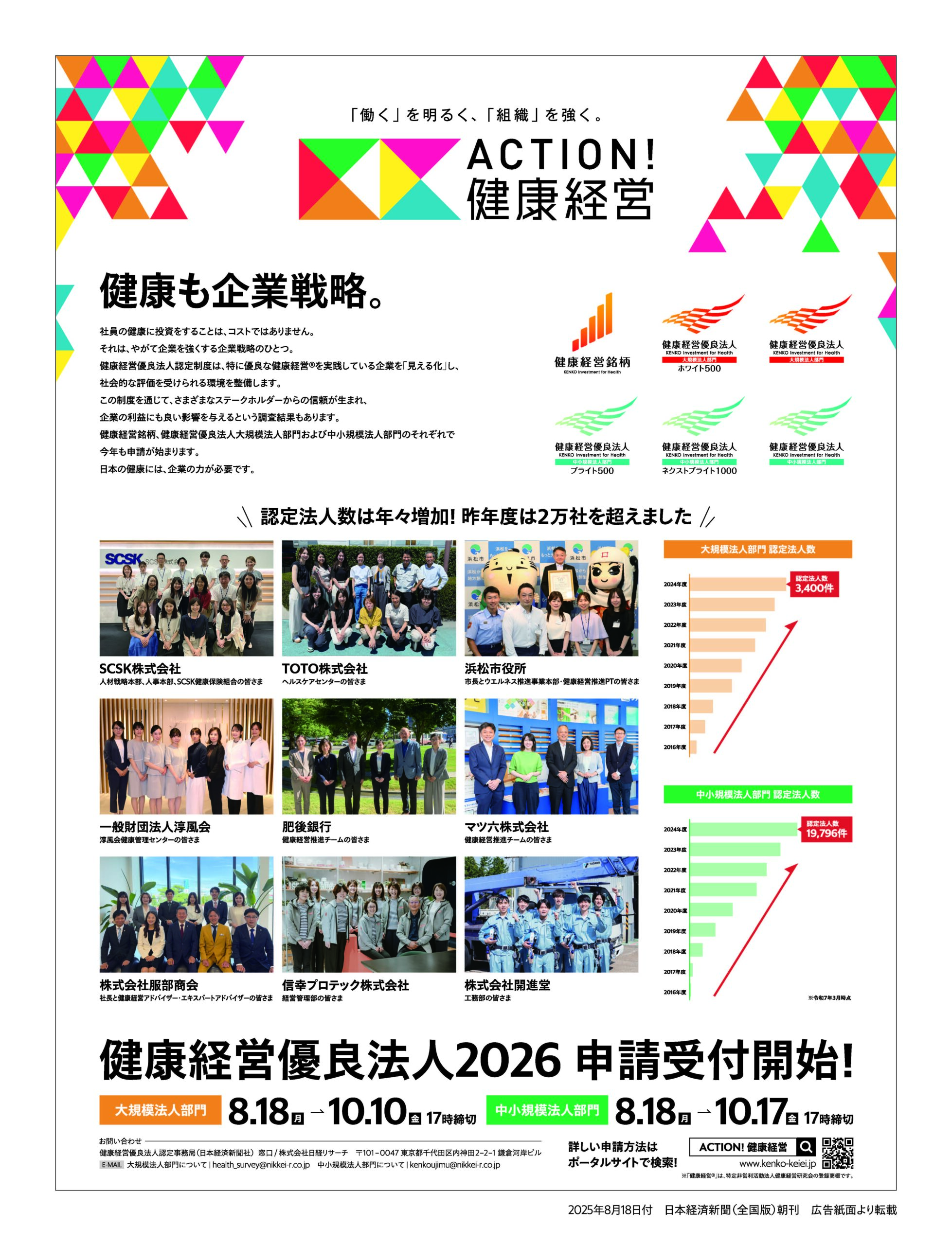内閣府 「仕事と生活の調和」推進サイト「カエル!ジャパン」通信 第220号「長く楽しく働ける健康的な仕事環境づくり」 に、 当社の働き方改革・健康経営に関する取り組みが掲載されました!