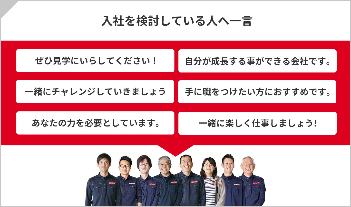 長い時間をかけて着実に見につけた経験や実力が、信頼される仕事につながっていきます。