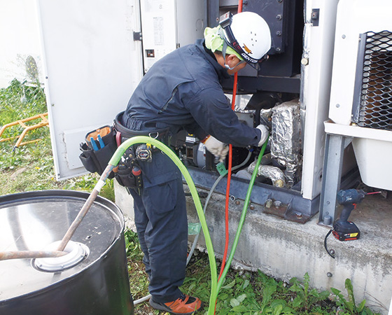 電気式エアコン(EHP・PAC)、ガスエンジン式エアコン(GHP)、灯油エンジン式エアコン(KHP)、氷蓄熱エアコン、空調機点検・整備作業、フロン排出抑制法による定期 / 簡易点検、空調機クリーニング・洗浄作業