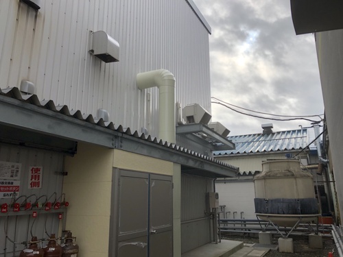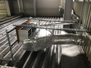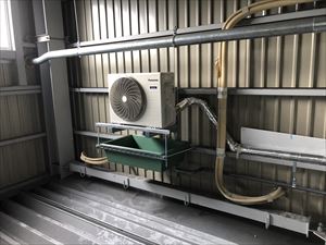 依頼元にて手配いただいた小屋にボンベを収納し、当社にてルームエアコン設置とダクト工事を行いました。