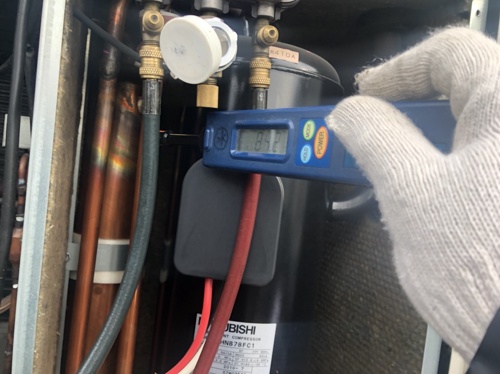 機器運転中のフロンガス圧力を計測し、間接的に漏れの有無を点検します