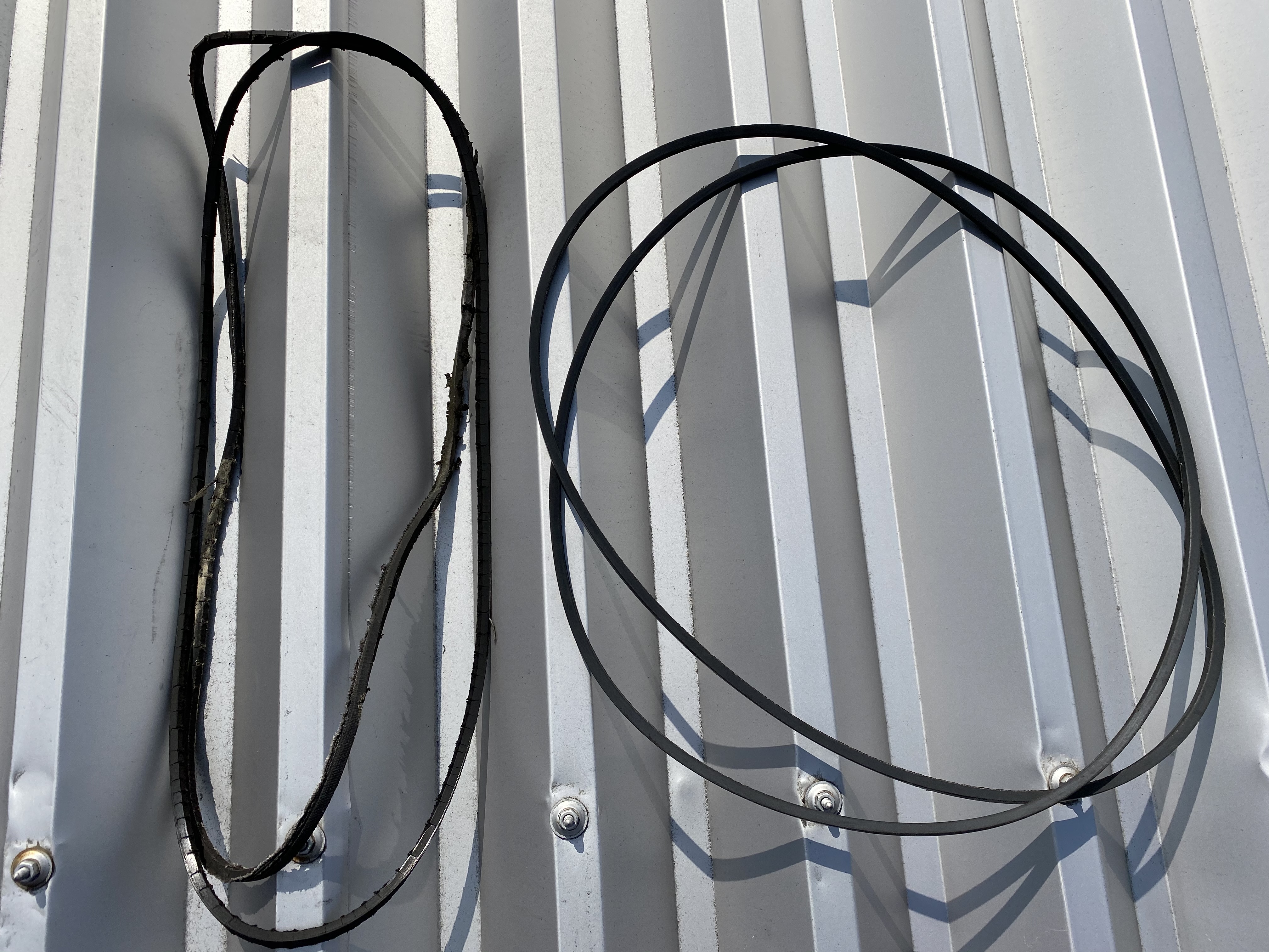 排風機やエアハンドリングユニット、その他床置き型エアコンには、Vベルトを使用しモーターと送風機をつないでいるものがあります。Vベルトはゴム製の為、使用を続けると必ず摩耗・伸び等が発生します。Vベルトが消耗すると効率が悪くなり、最終的には破断し機器使用不可となります。その為定期的な点検、張り調整、ベルト交換が必要となります。