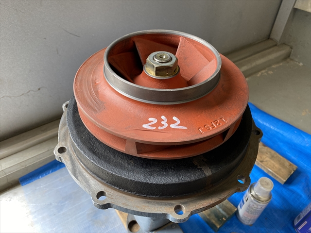 冷却水循環用のポンプで内部の腐食が進行していたため、羽根車やボルトなどを外す際に苦労しました。異音、水漏れが無く運転状態が良好であることを確認し完了しました。
